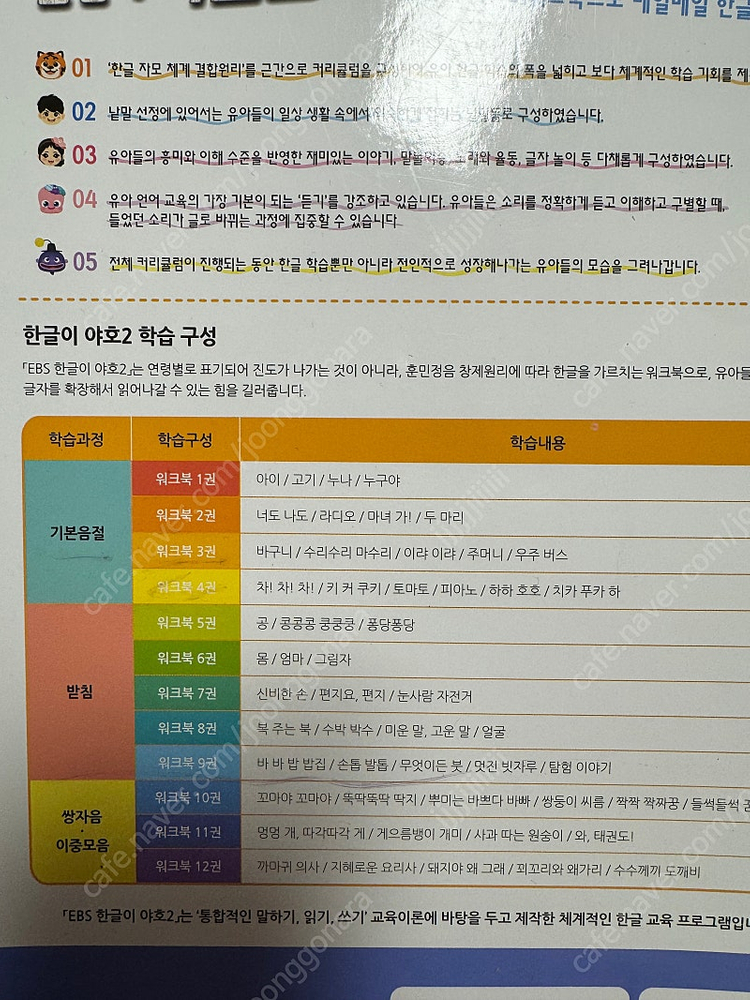 ※ 카페 상품 게시글은 자동으로 중고나라 앱/사이트에 노출합니다. 노출을 원하지 않으실 경우 고객센터로 문의 바랍니다. ※ 등록한 게시글이 회원의 신고를 받거나 이상거래로 모니터링 될 경우 중고나라 사기통합조회 DB로 수집/활용될 수 있습니다. ※ 게시글 내 외부 링크(타 플랫폼 주소, 카카오 오픈채팅 주소 등)을 등록하는 경우, 게시글 삭제 및 서비스 활동 제한 조치를 받을 수 있습니다. ─────────────────── 📢 제목에 "출판사+책 이름+저자”를 넣어 작성하면, 보다 빠른 판매가 가능합니다! 📢 게시글 작성 시 배송 방법에 “직거래”와 “내 위치” 설정할 경우, 보다 빠른 판매가 가능합니다! 👆 오늘 작성가능한 게시글 수가 부족하다면, 상단에 "중고나라 앱 다운받기"를 통해서 앱에서 작성해 보세요! 기본음절 1권 1/4정도 앞부분 사용 나머지 2,3,4권 새책 받침글자,쌍자음 이중모음세트 8권 새책 쓰기놀이터 12권 / 한글쓰기책 2,3권 /공 콩콩 쿵쿵 퐁당퐁당5권/ 몸 엄마 그림자6권/ 그림책 8개 6.7.9.10.11.12.13.15 쓰기놀이터 1권만 앞 2페이지 한글쓰기책 2권 16페이지 3권 8페이지 5권 100장중 20페이지 6권 10페이지 사용 그림책은 워크북 아님 🚨회원님의 거래 게시글을 노린 중고나라 운영진 사칭 피싱 사이트를 주의하세요🚨
