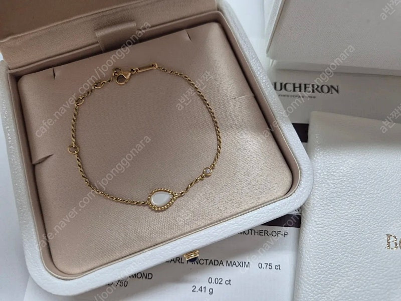 ※ 카페 상품 게시글은 자동으로 중고나라 앱/사이트에 노출합니다. 노출을 원하지 않으실 경우 고객센터로 문의 바랍니다. ※ 등록한 게시글이 회원의 신고를 받거나 이상거래로 모니터링 될 경우 중고나라 사기통합조회 DB로 수집/활용될 수 있습니다. ※ 게시글 내 외부 링크(타 플랫폼 주소, 카카오 오픈채팅 주소 등)을 등록하는 경우, 게시글 삭제 및 서비스 활동 제한 조치를 받을 수 있습니다. ─────────────────── 📢 제목에 "제조사/ 브랜드 명"과 "상품명”를 넣어 작성하면, 보다 빠른 판매가 가능합니다! 📢 게시글 작성 시 배송 방법에 “직거래”와 “내 위치” 설정할 경우, 보다 빠른 판매가 가능합니다! 👆 오늘 작성가능한 게시글 수가 부족하다면, 상단에 "중고나라 앱 다운받기"를 통해서 앱에서 작성해 보세요! 🚨회원님의 거래 게시글을 노린 중고나라 운영진 사칭 피싱 사이트를 주의하세요🚨 -부쉐론쎄뻥 보헴 팔찌 마더오브펄 (정품) 22년 9월 압구정 갤러리아 백화점 구매. 가볍게 몇번 시착후 부쉐론 보석함에 보관만 함 -정가 213만. (부쉐론 보석함, 휴대용 보관함, 쇼핑백, 보증서 구매영수증등) 전구성 입니다~ 직거래 or 택배가능 중고거래 특성상 교환, 환불×
