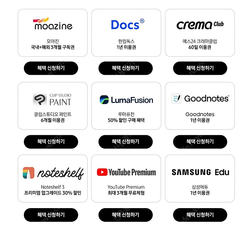 YES24 예스24 크레마클럽, 한컴독스 1년 이용권, 삼성에듀 이용권 팝니다 한컴독스 1년 이용권 - 8,000원 YES24 예스24 크레마클럽 60일 이용권 - 3,000원 삼성에듀 1년 이용권 이용권 - 2,000원 굿노트 1년 구독 이용권 - 4,500원 네고문의 정중히 사양합니다. 구매 원하시면 OIO 89O4 II86 문자 부탁드립니다.