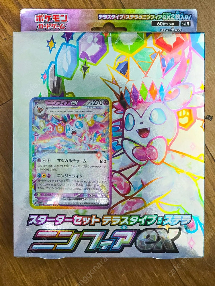 ※ 카페 상품 게시글은 자동으로 중고나라 앱/사이트에 노출합니다. 노출을 원하지 않으실 경우 고객센터로 문의 바랍니다. ※ 등록한 게시글이 회원의 신고를 받거나 이상거래로 모니터링 될 경우 중고나라 사기통합조회 DB로 수집/활용될 수 있습니다. ※ 게시글 내 외부 링크(타 플랫폼 주소, 카카오 오픈채팅 주소 등)을 등록하는 경우, 게시글 삭제 및 서비스 활동 제한 조치를 받을 수 있습니다. 👆 오늘 작성가능한 게시글 수가 부족하다면, 상단에 "중고나라 앱 다운받기"를 통해서 앱에서 작성해 보세요! ─────────────────── 📢 제목에 "제조사/ 브랜드 명"과 "상품명”를 넣어 작성하면, 보다 빠른 판매가 가능합니다! 📢 게시글 작성 시 배송 방법에 “직거래”와 “내 위치” 설정할 경우, 보다 빠른 판매가 가능합니다! 🚨회원님의 거래 게시글을 노린 중고나라 운영진 사칭 피싱 사이트를 주의하세요🚨 포켓몬스터 TCG 스칼렛&바이올렛 님피아 EX 팩 일본판입니다. 구성품은 님피아 EX svLN 2개, 이브이 3개, 귀중한 끌차 ACE SPEC 1개 외 총 60개 카드 + 님피아 코인 + 덱 종이
