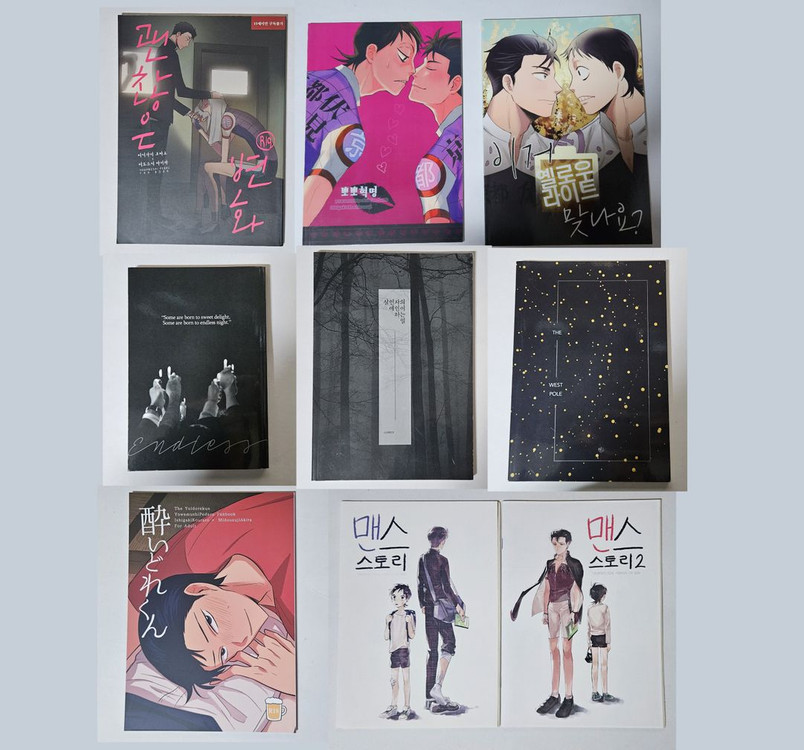 겁쟁이페달 회지 9권 일괄 판매합니다. 이시미도 (이시가키 코타로x미도스지 아키라) 소설 - 끝없는 밤 🔞 - 살인자의 애인이 하는 일 🔞 - The West Pole 🔞 만화 - 괜찮은 변화 🔞 - 뽀뽀혁명 - 이거 옐로우 라이트 맞나요? - 주정뱅이군 🔞 / 일본 원서 - 맨스 스토리 1 - 맨스 스토리 2 전부 구매 후 OPP 봉투 씌워서 리빙박스 보관해둔 것들이라 전체적으로 깨끗하고 상태 좋습니다. 괜찮은 변화, 소설 3권은 두께가 좀 있습니다. 채팅 주시면 성인인증 후 계좌 안내드리겠습니다. 박스 포장해서 구매 기준 1~2일 내 배송 해드립니다. 📦 배송방법 반택or알택 +0.2 편택 +0.37