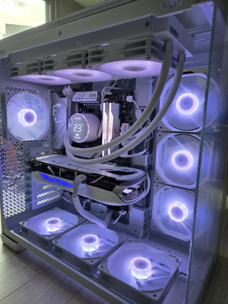 라이젠7 9800X3D B850M 어로스엘리트 아이트 WIFI DDR 7200-8000MHZ 32GB 화이트 RTX4080S SUPER 16GB 갤럭시 화이트 안텍 C8 MESH 화이트 SSD 980 삼성 1TB 라니xy 360 화이트 윈11 입니다! 새상품입니다.