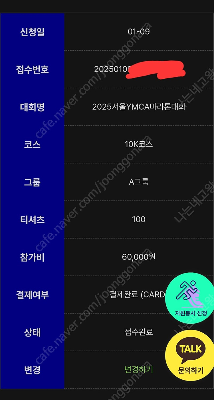 ymca 마라톤 10k 양도합니다 아직 배번호 등 수령지 변경이 가능한거 같습니다 타 대회 참가로 양도합니다 📢 제목에 "제조사/ 브랜드 명"과 "티켓명(ex. 스타벅스 아메리카노 Tall) ”을 넣어 작성하면, 보다 빠른 판매가 가능합니다! 📢 게시글 작성 시 배송 방법에 “직거래”와 “내 위치” 설정할 경우, 보다 빠른 판매가 가능합니다! 🚨회원님의 거래 게시글을 노린 중고나라 운영진 사칭 피싱 사이트를 주의하세요🚨