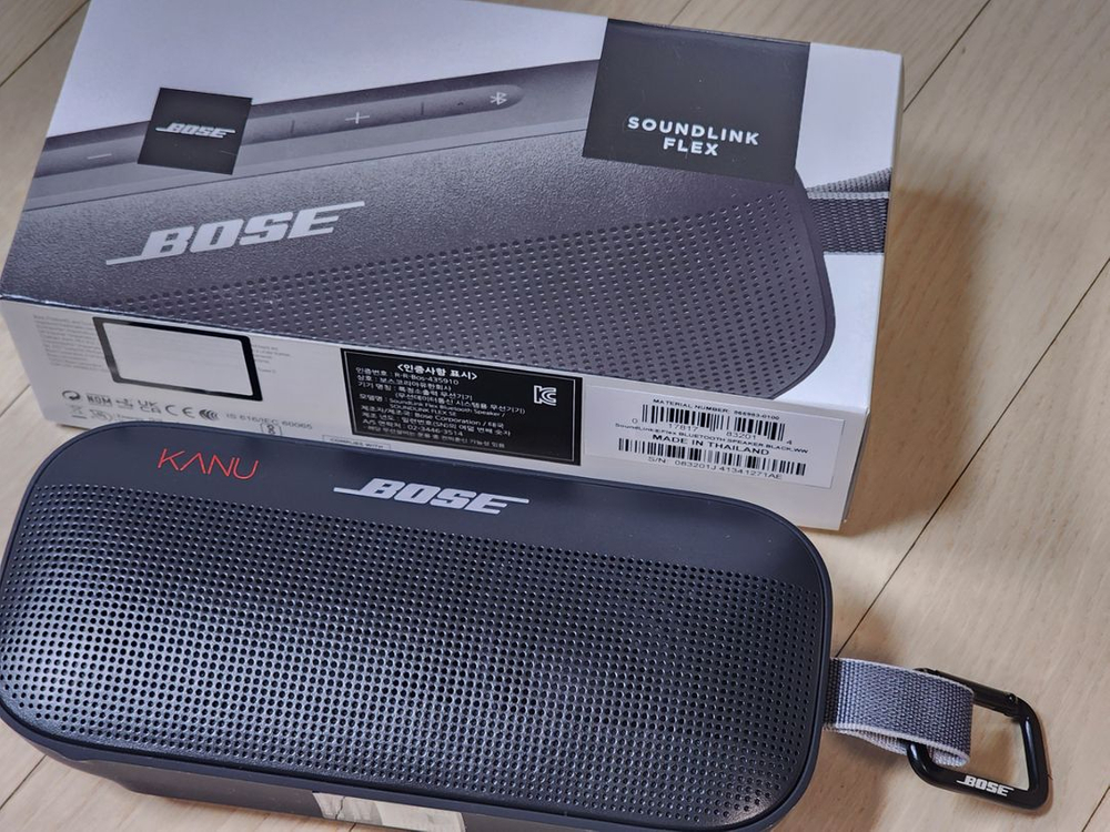 보스 사운드링크 플렉스 블루투스 스피커 팝니다. 카누로 받은 스피커인데, 일반제품과 다른게 카라비너가 추가된 것으로 캠핑때 걸어 둘수 있습니다. 캠핑을 하지않아서 집밖으로 나가본 적 없고, 낙상 등도 전혀 없습니다. 보스 스피커라 작지만 울림이 좋습니다. 정품스티커 붙여있고, 박스와 충전케이블(미사용) 포함입니다. jbl 어센틱 500으로 업글하면서 내놓습니다. 실제 구매시만 연락바랍니다.
