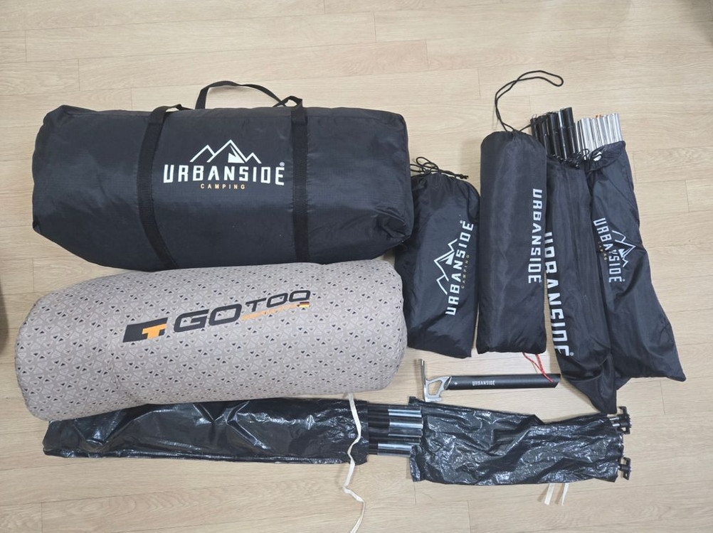 구성품(판매가 약 56만원) 어반사이드 프로텍트3 차박텐트 크림&블랙 (기본 폴대, 기본 팩 포함) 듀랄루민 폴대 전용 방수플라이시트 스틸보조폴대 PVC 투명창 듀랄루민 망치 고투 차박 매트(차 트렁크에 까는 매트) 차박용으로 도킹하거나 자립도 가능한 텐트입니다. 총 5번 사용했고 텐트 세탁도 중간에 해서 깨끗하고 상태 좋습니다. 바빠서 캠핑을 잘 못 가서 판매합니다. 일산이나 서울 지역 직거래 원합니다.