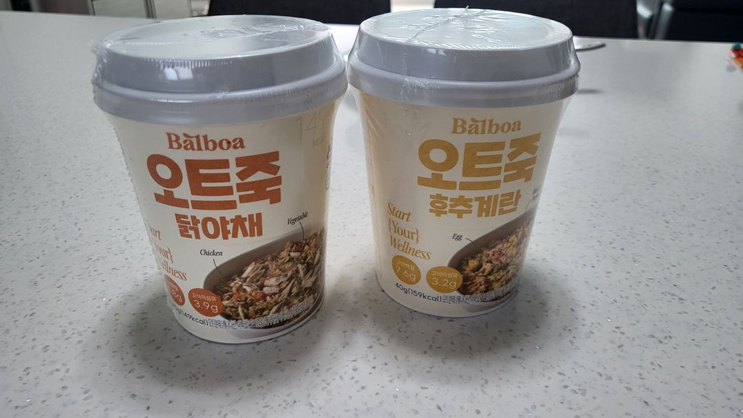 건강과 다이어트에 좋은 발보아 오트죽 팝니다. 닭야채맛 1개(25.11.7까지) 후추계란맛 1개(25.10.31까지) 각 2,000원 씩 2개 4,000원에 팝니다.