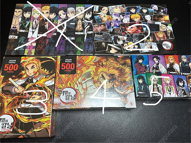 제목 그대로 귀멸의 칼날 미개봉 퍼즐 판매합니다. 전부 비닐 안 뜯은 미개봉 상품입니다. 1번: 판매완료 2번: 11000 3번: 13000 4번: 판매완료 5번: 판매완료 거래는 택배거래(편의점 일택/반택)로만 진행하고 택배비 추가됩니다. 일괄 거래시 택포(편의점 일택) 27000에 드립니다. 네고 문의 받지 않으니 사실 분만 연락주세요!