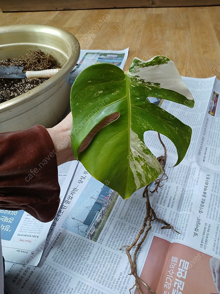몬스테라알보 뿌리좋아 우선 식재 해놨습니다 택배시 뿌리만 꽁꽁 싸매 포장해 보내드려요 잎사이즈 20 가격14000원 우체국택비 5천입니다 궁굼하신점 문의 주세요