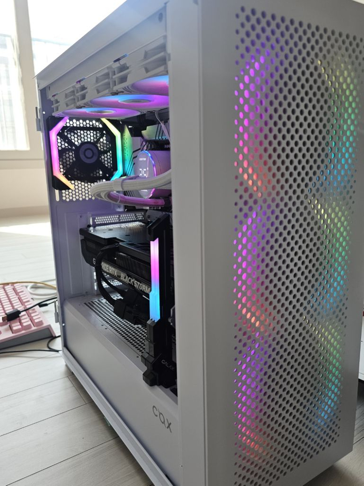 사양내역은 아래와 같습니다 I9-14900K 인텔 Z790 ASUS 프라임 - P 메인보드 D5 DDR5 6000MHZ 32GB RGB 튜닝램(화이트 16GB X2EA) SSD 980 시리즈 삼성 1TB M.2 파워 잘만. 1000W 정격 파워서플라이 3R SYS XY 시리즈 360 화이트 CPU 일체형 수냉쿨러 엔비디아 지포스 RTX4080S SUPER 슈퍼 이엠텍 블랙스톰(3FAN) 갤럭시그래픽 지지대 그래픽밑 장착 OS윈도우10 PRO 보드귀속 (원하시면 11업그레이드 하셔서 쓰셔도 정품인증됩니다) COX G400 화이트 스윙도어 매쉬 강화유리 케이스 파워선도 같이드립니다.