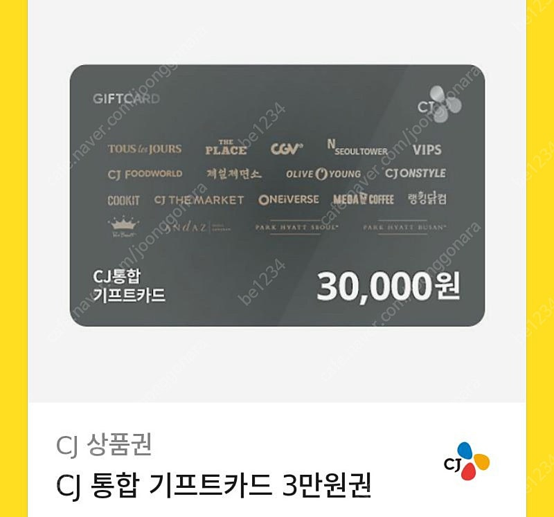 CJ통합 기프트카드 3만원권 2만 5천원에 판매합니다 연락주세요:) 010-8944-공칠일사