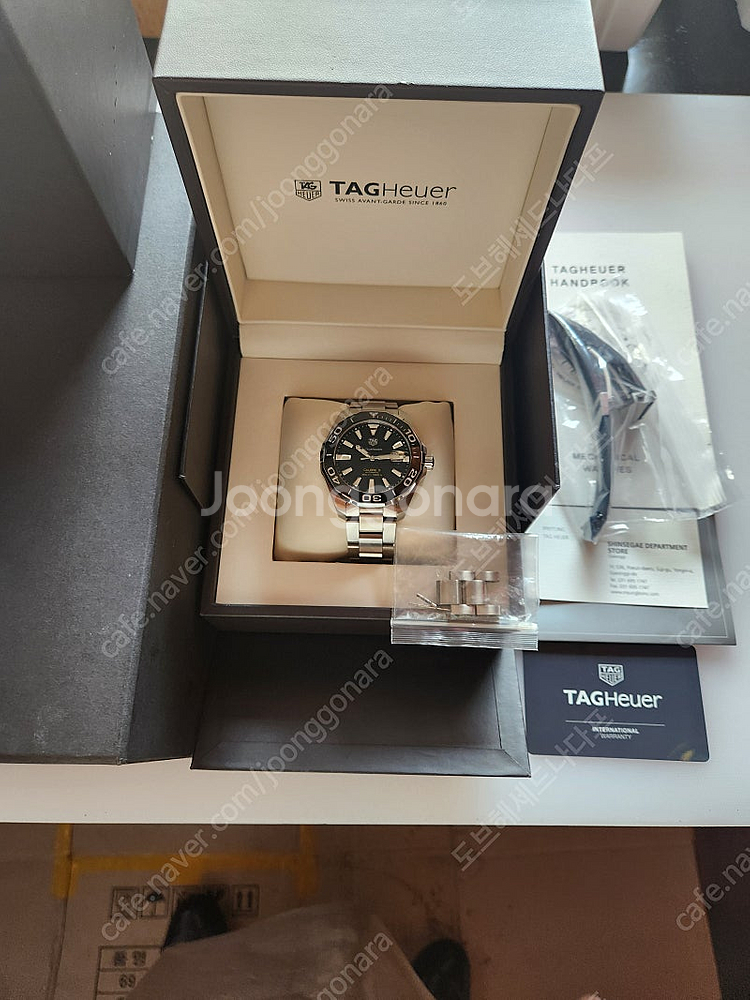 📢 제목에 "제조사/ 브랜드 명"과 “상품명”을 넣어 작성하면, 보다 빠른 판매가 가능합니다! 📢 게시글 작성 시 배송 방법에 “직거래”와 “내 위치” 설정할 경우, 보다 빠른 판매가 가능합니다! 테그호이어 아쿠아레이서300오토메틱 풀박스 2018년 구매 신세계경기점 구매 43미리입니다 🚨회원님의 거래 게시글을 노린 중고나라 운영진 사칭 피싱 사이트를 주의하세요🚨