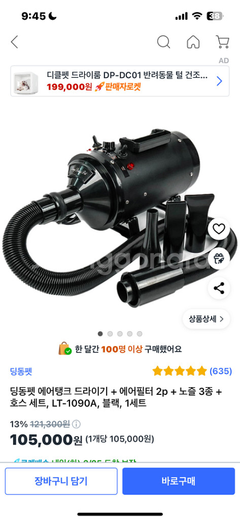 초강력 대형견 드라이기 딩동펫 에어탱크 드라이기 LT-1090A, 소리 큽니다. 우리 골든이가 소리에 민감해 3번 시도하고 실패 해서 팝니다. 사용을 안했다규 보심됩니다. 직접 가져가시면 최곱니다. 감사합니다.