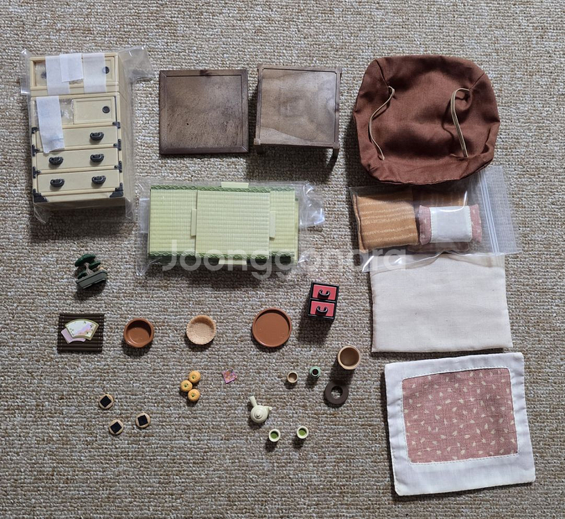 실바니안 다다미방입니다. 옷이랑 파란색 종이조각이 없어요 이불에 보일랑말랑 미묘한 노란? 점?? 있는데 저도 중고로 처음 가져본제품이라 무늬인지 아닌지모르겠습니다. 그외의 하자도 나름 찾아서 사진에 표시해두었습니다. 예민하신분은 피해주세요. 택미포 환불X