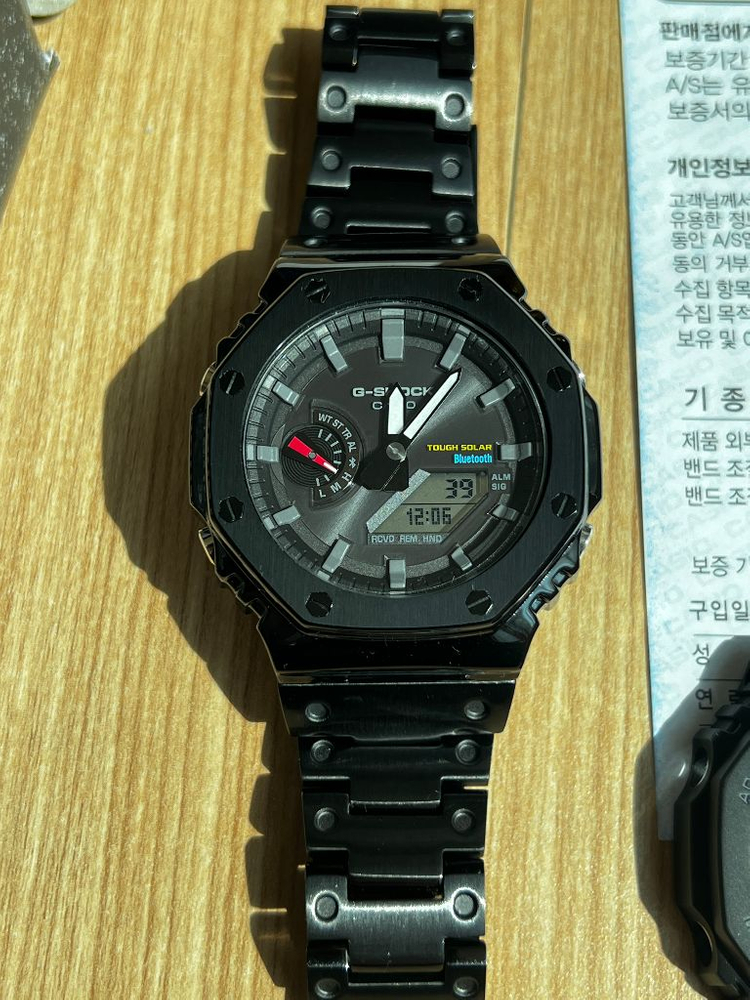 사진 그대로 다 드립니다. 블루투스로 시간 정확하고, 터프솔라라 배터리걱정 없습니다. 스크래치 하나도 없고 알리발 메탈케이스, 메탈줄 장착했습니다. 원래케이스와 줄도 모두 드립니다. 케이스 보증서 모두 가지고 있습니다.