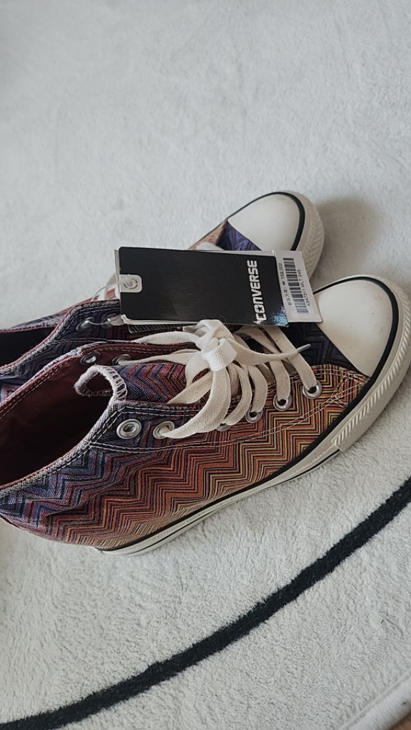 개인정보(거래정보)를 주고받는 행위는 사기에 노출될 수 있으므로 즉시 중고나라로 신고해 주세요오래 전 소장용으로 구매했던 미쏘니 콜라보 컨버스 미드모델입니다. 속굽이 약 7cm라 키높이 효과도 있어요. 당시 159000원이었습니다. 텍붙어있어요. 제품명 ct AS Lux Missoni Mid 245 4만->3만 010 7608 73칠삼