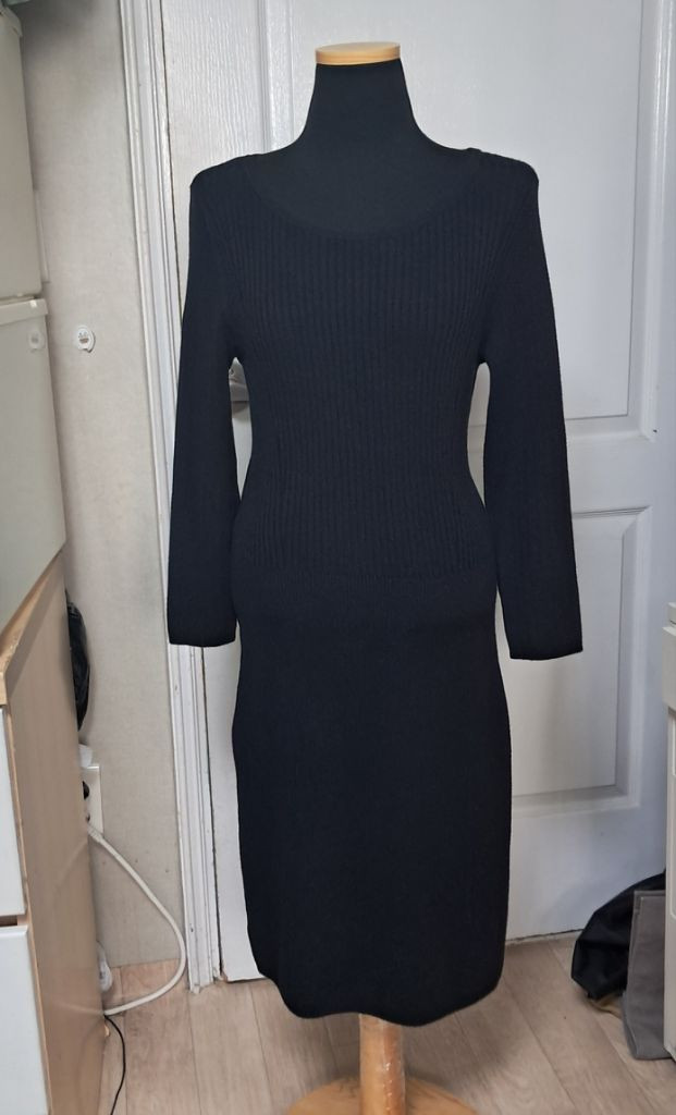 니트 블랙 원피스 사이즈: M(55~66)상체 비만 66인 저에겐 좀 작은감이 있어 좀 부담스러우니 길이와 대략적인 핏감만 참조하세요 55~날씬66에게 이쁘게 잘 맞을거예요. 신축성 좋으나 몸매 붙는 스타일 사이즈: 43~48, 96, 49(가슴둘레단면- 니트 재질이라 신축성 있음, 총장, 소매길이) 소매길이 약 9부 길이감 봄 가을 두께감 상태: 소재 특성상 자연스러운 사용감은 있어 보이나 특별 하자 없이 상태 양호 ♡에누리요청, 택포요청 찔러보기 답변X 교환 X 하실분만 연락 부탁 드려요. ♡교환 환불 × 신중한 구매 부탁드립니다. (글에기재한 하자 꼭 숙지 부탁) ♡타 사이트에 동시에 올리고 있어 구두 예약×, 예약금 및 송금 하셔야 예약 가능 ♡직거래 진짜 오실분만 연락부탁, 직거래시 에누리 요청X ♡중고 제품인데 새제품 품질 원하시면 새제품 구매 권장 ♡안전결제 선호 ♡ 택배거래시착불, 선불 반값택배2200원(크기 제한,모든변80cm이하) 일반택배-4000원,30만원이상 무료배송 ♡개인차 있어 사이즈조언×년도수답변×