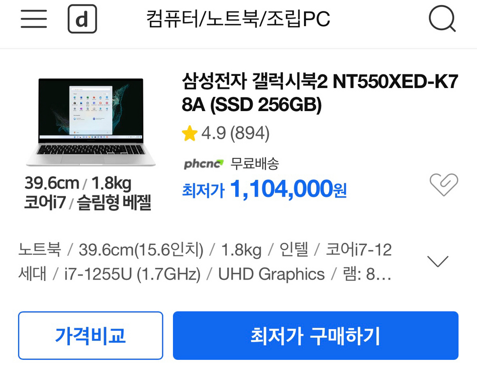 삼성 갤럭시북2 NT550XED-K78A 싸게 팝니다