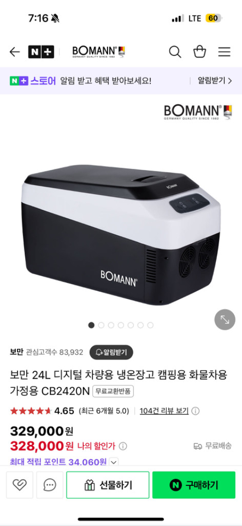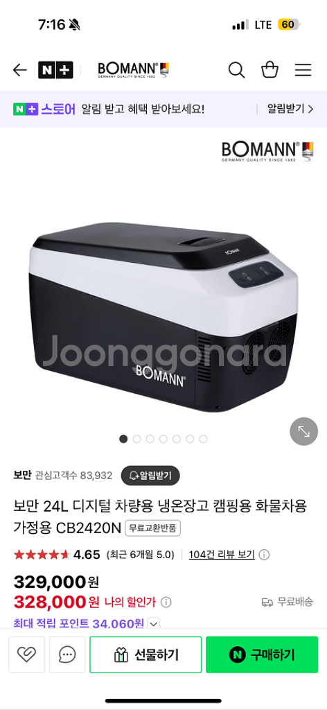 보만 CB2420N 디지털 차량용 냉온장고 캠핑용 화물차용 가정용 24L 새제품 팝니다 큰차 새차 사면서 받은거구요 공식몰에도 329,000원하네요 12v, 24v, 220v라서 가정이든 어디서든 사용 가능하네요 싼값에 득템하세요 직거래는 대구입니다 공식몰 https://m.brand.naver.com/bomann/products/4967512135?nl-query=CB2420N&nl-ts-pid=i%2FBFzdqVIFZss6qpR78ssssssSl-404257&NaPm=ct%3Dm9cmtqdc%7Cci%3D43c003ec32be5bca8fd938c19167356f070e3f20%7Ctr%3Dsls%7Csn%3D417589%7Chk%3Dd62cb3ba39313a8daca3c11fd994756b43bf3405#REVIEW