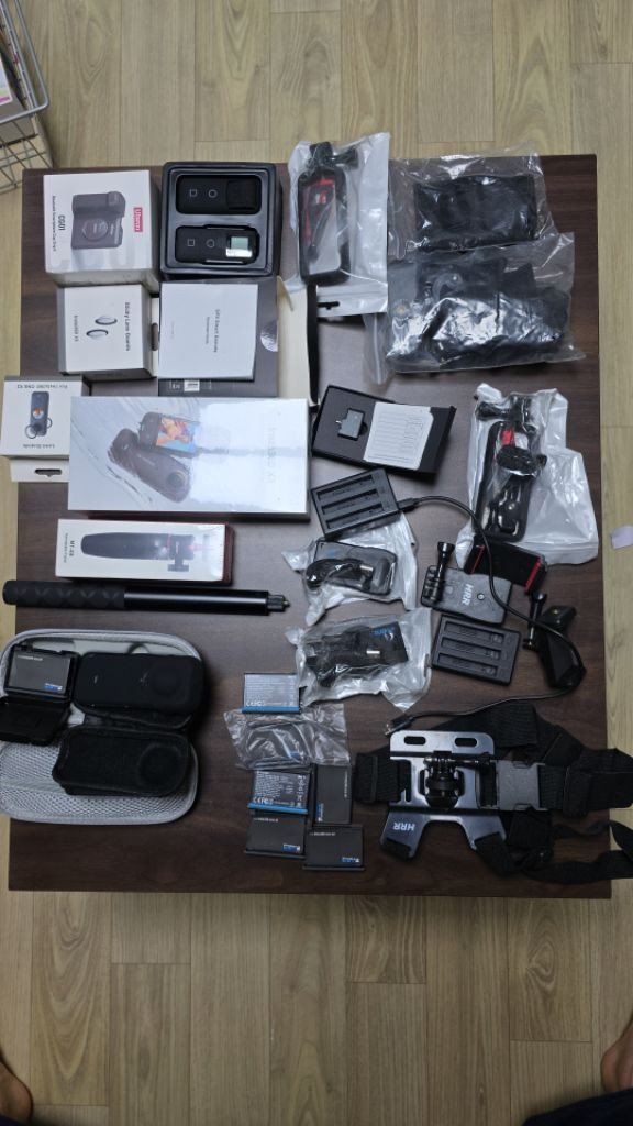 인스타360X3는 미개봉 새제품 인스타360X2는 개봉했지만 몇번 사용안함 부속품들까지(사진참조) 전부포함해서 아주저렴하게 판매합니다 리모콘/ 마이크/배터리8개 거치대/착용벨트/가방고정클립/연장봉/카메라 보호캡 및 가이드/충전기/메모리카드512기가2개 판매합니다.