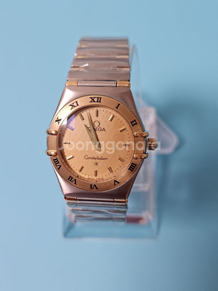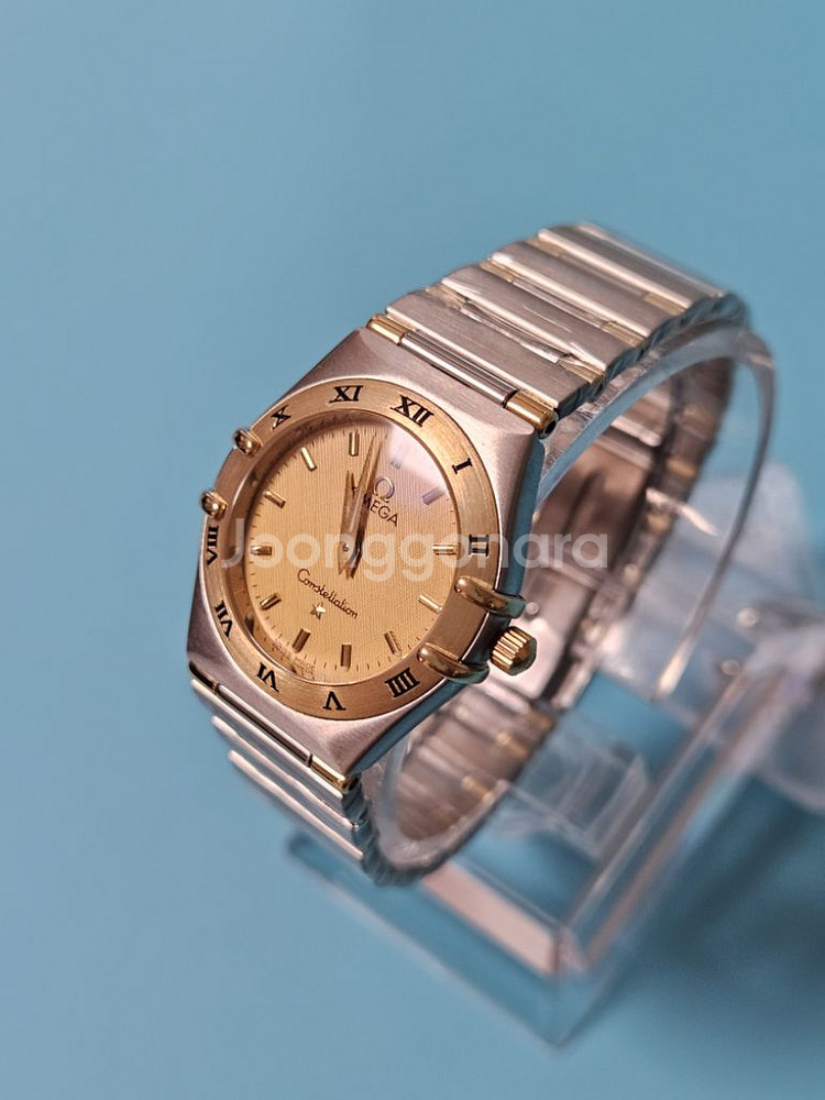 오메가 컨스틸레이션 18K 하프바 여성 콤비메탈 손목 시계 입니다. (SWISS made) 원형 골드판 작동 방식 ; 쿼츠 전자식/건전지 시계 케이스 사이즈 ; 직경 약25미리 시계줄 길이 ; 약16센치 /여분줄 1칸 있음(연결시 약17센치) 시,분 2침 방식 사파이어 크리스탈 글라스, 18K 다이얼 , 베젤, 밴드, 스텐레스 스틸 켸이스 & 밴드, Swiss made 쿼츠 무브먼트 시계 상태 ; 예물 시계로 사용 했다 주로 중요한 모임 때 사용 했었던 시계로 착용은 그다지 많이 하지 않아 상태 깔끔하고 깨끗 했었는데 판매를 위하여 명품 수리 샵 에서, 폴리싱 오버홀 점검 완료 하여 외관상태 아주 깔끔하고 깨끗 하며, 비닐씰 로 보양 처리 해놓 았으며, 건전지 는 물론 넣어져 있으며 모든 기능 정상 작동중 입니다 ~ 한가지 흠은 개런티 카드가 어디로 들어 갔는지 찾을수가 없어요~ 분명 버리진 않은것 같은데 일단 못찾아서 개런티 카드 없는것으로 가격 책정 하였습니다 ~ 전체적인 상태는 새것 대비 약90% 이상 ~ AA 구성품 ; 본품,정품케이스 상품 설명 책자 *방수는 생활방수 정도 되나 물에 항상 조심 하시는것이 좋으시겠습니다 ~ *단, 정품 감정서 필요 하신분은 사설 감정원 감정서를 발급 받아 드릴수 있으며,감정료 ₩70,000은 별도 입니다~ *중고페이 안전결재 환영 합니다.