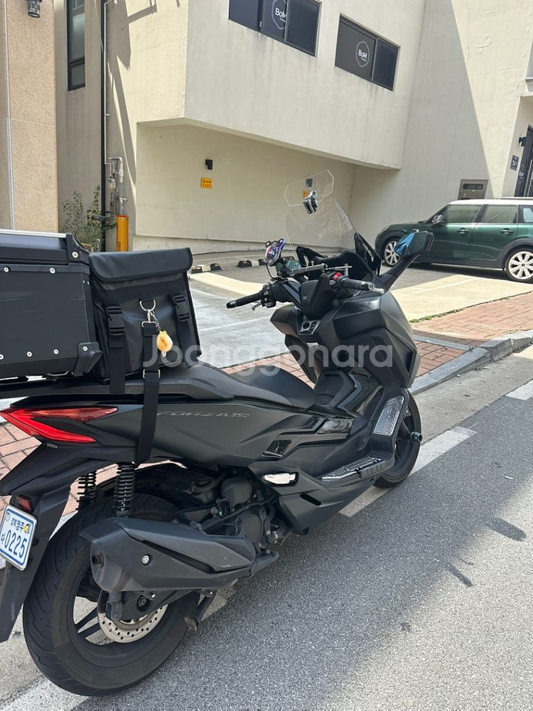 설명: 포르자 350 23년식 36@@@km 판매 글 설명하기 전에 말씀 드리자면 문제 있어서 파는 오토바이 아닙니다 퀵 그만 두려고 판매합니다. 배달셋팅 완료 가져 가셔서 타기만 하면 됩니다~ 본인 탈 때 좌꿍 우꿍 슬립 일체 없었음 전 주인 좌꿍 우꿍으로 인해 카울 찍힘 있네요 튜닝내역 사이드 브레이크 딸통 자석판 (편합니다) 보조스크린 열선 공돌 은장 크로스바 은장 발판 은장 사이드 미러 필름 키온 케이스 은장 브레이크, 타이어 마일리지 많이 남았어요 하자내역 하자라고 할 게 카울 상태 밖에 없습니다 하자라고 할 건 아닌데 곧 구동계 교체 하셔야 할 겁니다. 소리 올라 오네요 그래도 1만 정도는 더 탈 수 있을 것 같네요 엔진오일 항상 1500km마다 바로 갈아 주었고 3000km마다 오일 필터 갈아 주면서 탔습니다 배달 경력 5년 넘었습니다 그만큼 소모품 주기를 지나서 교체하거나 그런 적 없고 오토바이 관리도 소홀히 하지 않았습니다 비 오고 나면 항상 세차하러 다녔습니다. 구매하시는 분 나오면 포르자 350 전용 새스크린도 드리겠습니다. 세차 깔끔하게해서 준비할게요 문제 있는 오토바이 사서 스트레스 받지 마시고 깔끔하게 소모품 갈고 편히 타시죠 상태는 제가 자부하겠습니다.