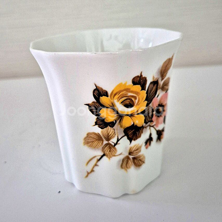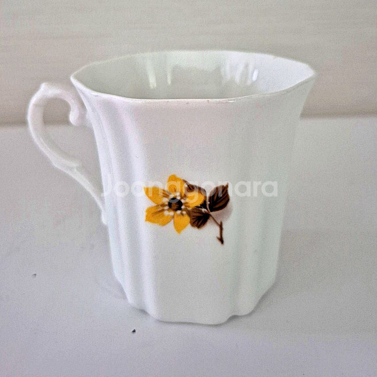 로얄 그래프톤 파인 본 차이나 플루티드 약 180ml 용량의 커피 머그잔이에요. 1950~1960년대에 영국에서 제작되었으며 핑크와 옐로우 플로랄 패턴이 특징이에요. 1900년에 설립된 로얄 그래프톤 파인 본 차이나는 메리 여왕의 왕실 보증을 받아 소장용 티팟, 팟잔, 피겨린를 전문으로 제작하며 시대를 초월한 아름다움과 우아함을 구현합니다. 전체적으로 빈티지한 사용감 외에는 깨끗한 상태에요! 크기 지름 10cm (손잡이 포함) 높이 8cm
