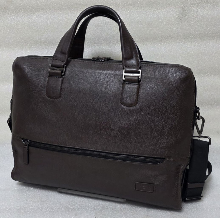 투미 TUMI 정품입니다 기본 가죽 서류가방이고 크로스백 입니다 모델명은 Harrison Horton Double Zipper Briefcase Leather 입니다 컬러는 다크브라운 입니다 가로40 세로30 폭8 입니다 전체가 부드러운 소가죽 입니다 매인칸 중앙에 두칸 입니다 한칸은 노트북 태블릿 수납합니다 한칸은 서류와 각종 물품 보관합니다 앞뒤로 지퍼로된 보조공간이 있습니다 사용감 적고 상태는 괜찮습니다 전체가 가죽이다보니 모서리에 사용감 조금 있습니다 사용하다보니 생기는 사용감 정도입니다 찢어지거나 큰 오염은 없습니다 손잡이와 크로스끈 양호합니다