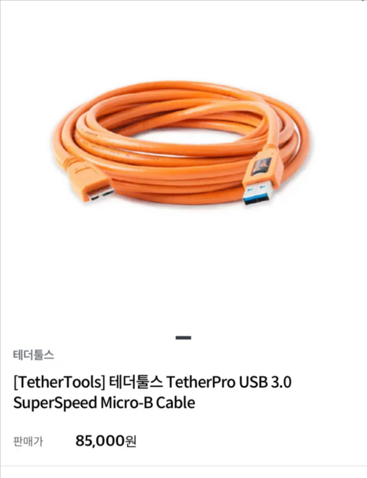 개인정보(거래정보)를 주고받는 행위는 사기에 노출될 수 있으므로 즉시 중고나라로 신고해 주세요1회만 사용하고 더이상 쓸일이 없어 보관중인 테더툴스 B케이블 판매합니다 테더툴스 TetherPro USB 3.0 SuperSpeed Micro-B Right Angle Cable