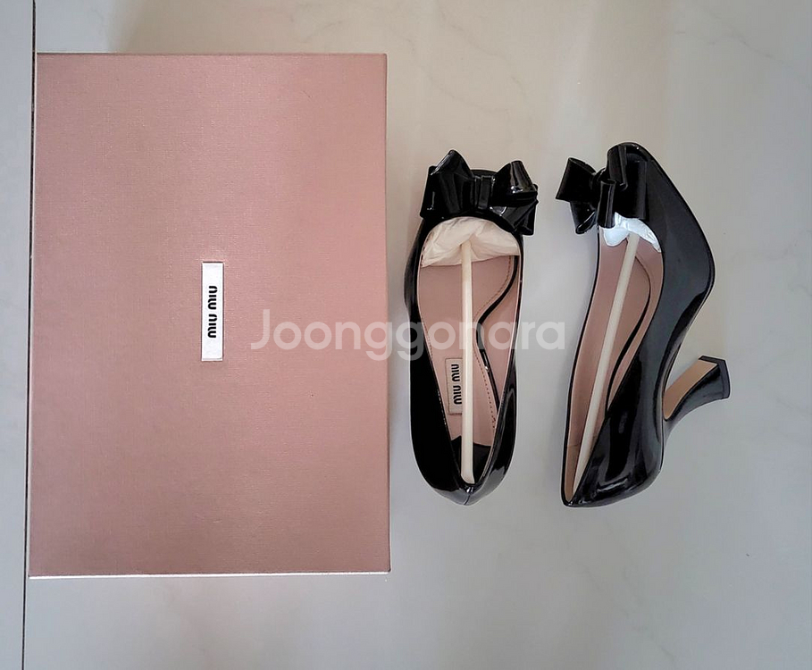 사이즈 IT 38 힐높이 8.5cm 페이턴트 가죽 peep toe 1회 착용 상태 좋아요! 롯데본점 구매했어요 페이턴트 가죽에 입체적인 bow, curved heel 이 귀여운 미우미우의 핍토 펌프스입니다 올해 트렌드인 핍토 슈즈이면서 유행 타지 않는 미우미우 클래식입니다