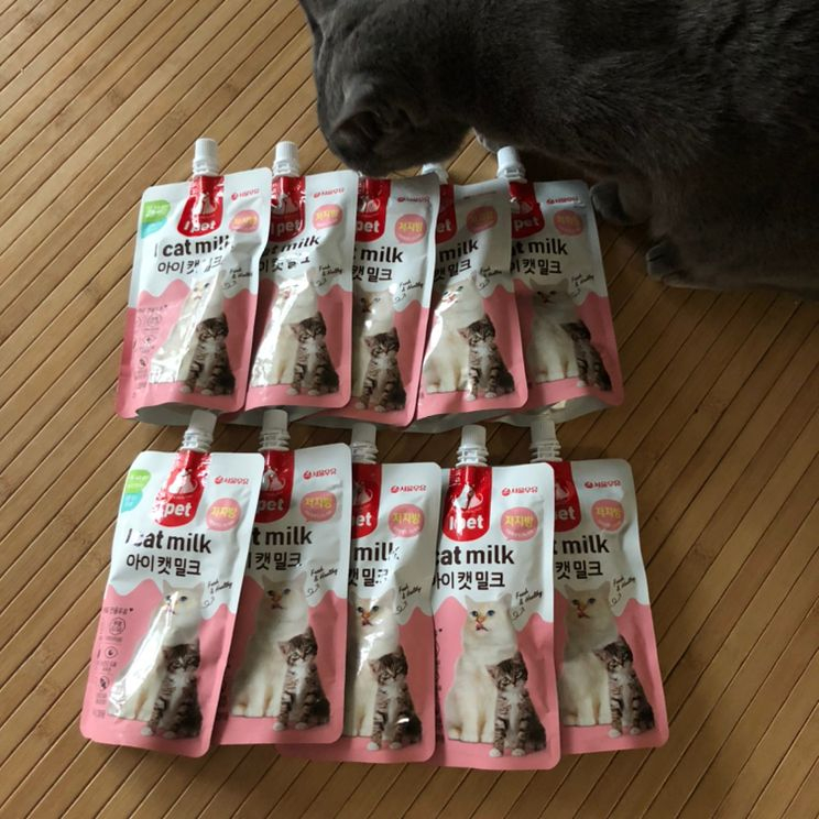서울우유 아이캣밀크 고양이전용으로 200ml 짜리 10봉 입니다. 저희집 냥님 음수량 높이려고 우유라도 마시라고 사드렸으나 한번 냄새맡고 두번다시 가까이하지 않아 팔게되었습니다... 10개 모두 유통기한은 2020년 7월 18일 까지이며 택포 15000원 입니다.