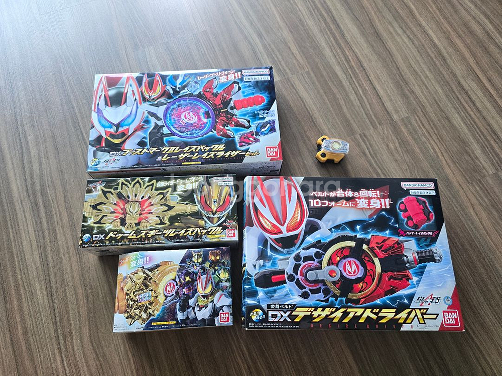 가면라이더 기츠 완구 판매합니다 전시만 했던 제품입니다. 프반 둠즈 기츠 디자이어 드라이버 부스트2 & 레레라 세트 피버유닛 일괄 18에 팝니다 모두 풀박이며 비닐 등 전부 다 있습니다. 레레라 제외 전부 절연시트 있습니다. 레레라에 조금 기스가 있습니다. 디자이어 드라이버 왼쪽 핀이 인식이 안돨때가 있으니 감안해서 구매해주세요. (됬다 안됬다 계속 반복 ㅡ 민감하신분은 패스) 아기토 버클은 서비스입니다. 택배비는 무게가 많이 나가서 높게 책정될수있는점 알아주세요 직거래는 태평역 5번출구에서 합니다.