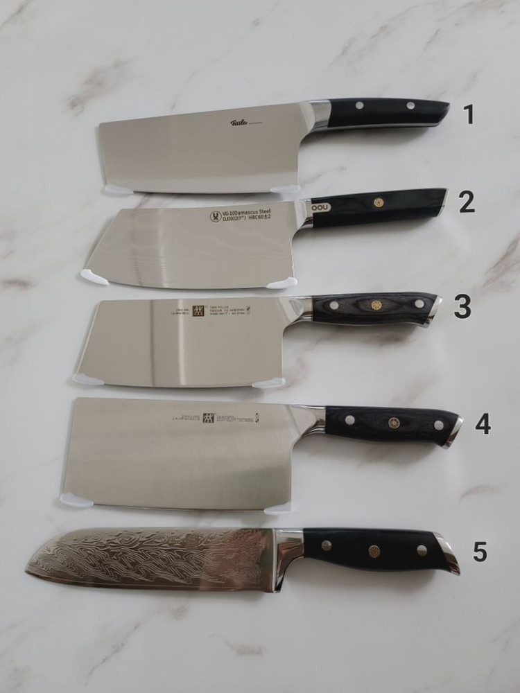 미사용입니다~ ❶휘슬러 중식칼=69000원 ❷독일 다마스커스 중식도=95000원 칼날길이 : 18cm,총길이 : 30 cm 무게 330g,경도 60±2 HRC 67중압축다마스커스텐의 강력한강도의 칼입니다 고급사양 다마스커스 중식도입니다 강도가 엄청 높은 스텐재질의 중식칼입니다 사용해본 칼중에 제일 맘에 들어요😊 이년정도 갈지않아도 문제없는 강도높은 스텐 칼입니다 ❸쌍둥이 중식칼=80000원 ❹쌍둥이 중식칼=85000원 ❺쌍둥이 한식칼=68000원 택배 문고리 대면거래