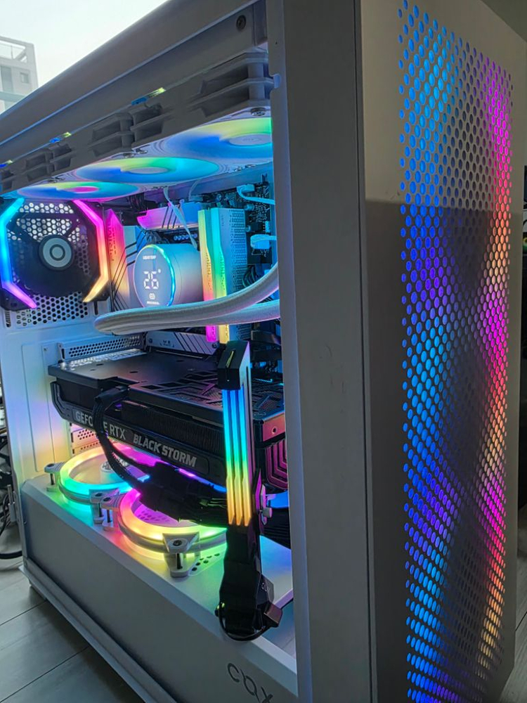 i9-14900K 정품 Z790 아수스 프라임 CSM DDR5 6000 - 32GB 화이트 방열판 (16GB X 2 EA 듀얼채널) P3 PLUS 1TB 마이크론 SSD 1000W 잘만 ATX3.0 GOLD 등급 파워서플라이 PCI 5 0 윈도우11 PRO 정품등록 이엠텍 지포스 RTX4080S SUPER 블랙에디션 16GB G400 COX 강화유리 매쉬 케이스 화이트 라니XY 360 리쿼드표기 화이트 CPU 쿨러 바로사용만 하시면되고 싸게 판매합니다 120mm fan x4개 추가장착 그래픽지지대 갤럭시 블랙 추가장착