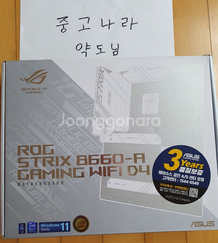 ASUS ROG STRIX B660-A WIFI D4 메인보드 바이오스 최신버전(인텔 12,13,14세대 CPU사용) ATX(30.5x24.4cm) 사이즈 소켓가이드 및 방열판 교체분해 한적없음 파손긁힘고장 없음 통신 및 핀제어 정상작동 M2.SSD 써멀패드 모두 미사용 풀박스 가정집에서 깔끔하게 사용했고 비흡연자이며 애완동물 안키웁니다 직거래 부천 범박지구대 근처 택배버래시 파손면책동의하에 우체국발송