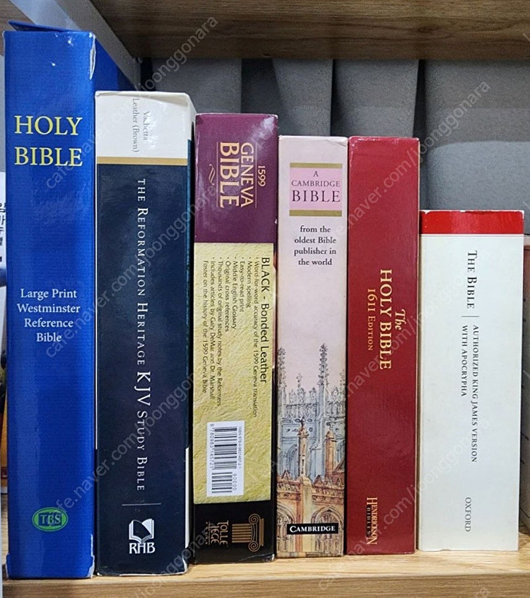 📢 제목에 "출판사+책 이름+저자”를 넣어 작성하면, 보다 빠른 판매가 가능합니다! 📢 게시글 작성 시 배송 방법에 “직거래”와 “내 위치” 설정할 경우, 보다 빠른 판매가 가능합니다! 영어 성경 판매합니다. 킹제임스 버전 성경과 제네바 성경이며, 모두 새책입니다. 하단의 성경책 개별 사진도 참고하세요. 직거래, 택배거래 모두 가능합니다. 추가 사진이나 문의 있으시면 OlO-75lO-l474로 연락 주시면 됩니다. 일 때문에 전화를 바로 못 받을 수도 있으므로 문자메시지 보내주세요. 확인 즉시 답변 드리겠습니다! *순서는 사진 좌측->우측입니다.* (1) TBS Large Print KJV Westminster Reference Bible, Black Calfskin -ISBN : 9781862284753 -가격 : 120,000원 (2) Study Bible-KJV -ISBN : 9781601784421 -가격 : 200,000원 (3) 1599 Geneva Bible -ISBN : 9780983145721 -가격 : 60,000원 (4) King James Version Concord Reference -ISBN : 9780521150347 -가격 : 140,000원 (5) Text Bible-KJV-1611 400th Anniversary Edition -ISBN : 9781565631625 -가격 : 100,000원 (6) The Bible : Authorized King James Version with Apocrypha -ISBN : 9780192835253 -가격 : 10,000원 (1) TBS Large Print KJV Westminster Reference Bible, Black Calfskin -ISBN : 9781862284753 -가격 : 120,000원 (2) Study Bible-KJV -ISBN : 9781601784421 -가격 : 200,000원 (3) 1599 Geneva Bible -ISBN : 9780983145721 -가격 : 60,000원 (4) King James Version Concord Reference -ISBN : 9780521150347 -가격 : 140,000원 (5) Text Bible-KJV-1611 400th Anniversary Edition -ISBN : 9781565631625 -가격 : 100,000원 (6) The Bible : Authorized King James Version with Apocrypha -ISBN : 9780192835253 -가격 : 10,000원 🚨회원님의 거래 게시글을 노린 중고나라 운영진 사칭 피싱 사이트를 주의하세요🚨