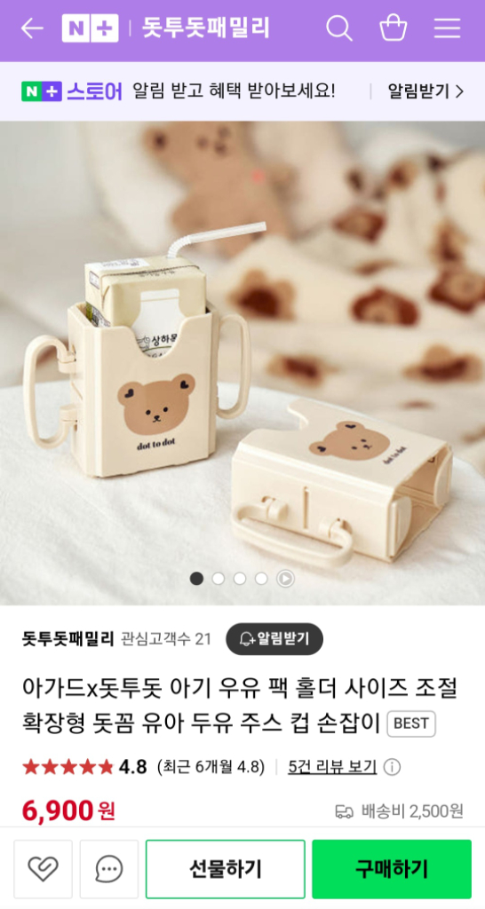 아기드 돗투돗 우유 두유 홀더 새상품팝니다 아이가 두유나 우유 마실때 편하게 손으로 잡고 마실수 있는 홀더입니다 우리아이는 사용할시기를 놓쳐 보관만 하다가 중고나라에 올립니다 인터넷에 1개 6,900원에 배송비 별도인데 2개 9,000원에 팝니다