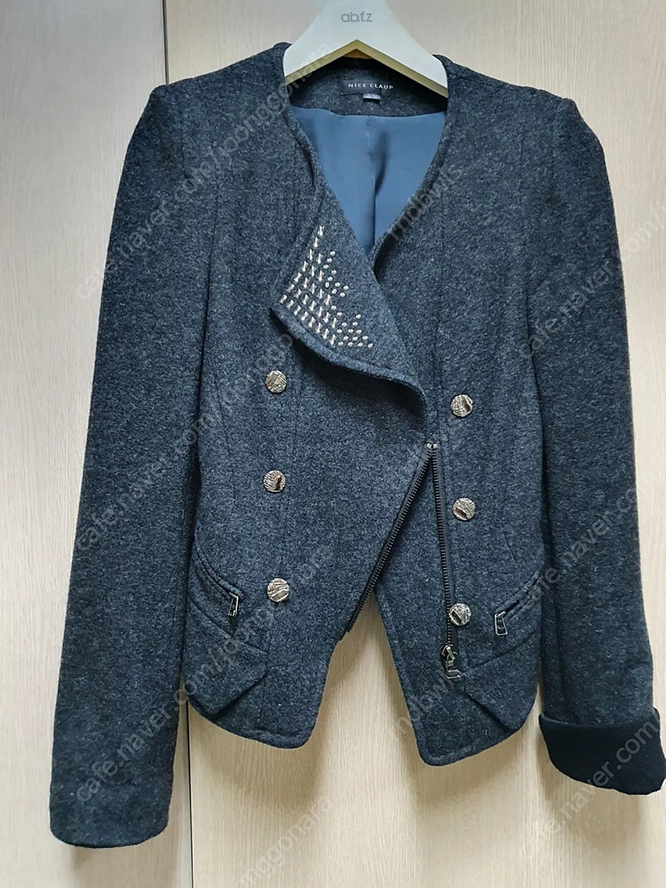 나이스크랍 봄가을 자켓 55 회색과 검정색의 중간정도 색깔. 스판끼 약간 있음. 소매는 접었을때 사진과 같음. 두께는 중간정도. 가을겨울에 적합. 거의 안입었고 상태 좋음. 직거래는 한티역 010 587구 482칠