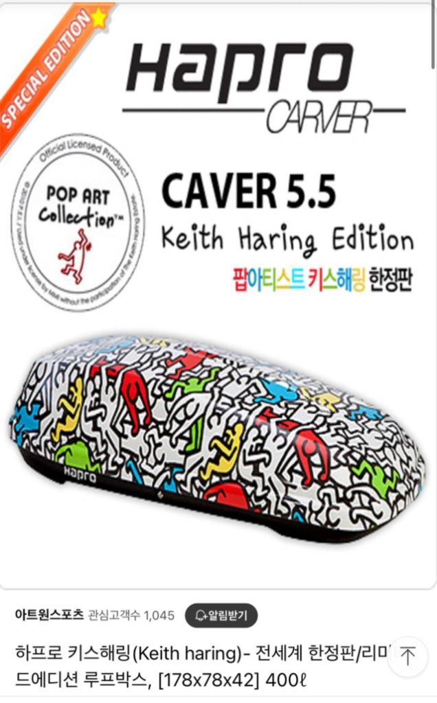 하프로 루프박스 키스해링 에디션입니다. 400리터 사이즈이며 기스 및 사용감 많아 저렴히 보냅니다. 파손부위는 없습니다 한쪽으로만 열리며 키 하나 있습니다.
