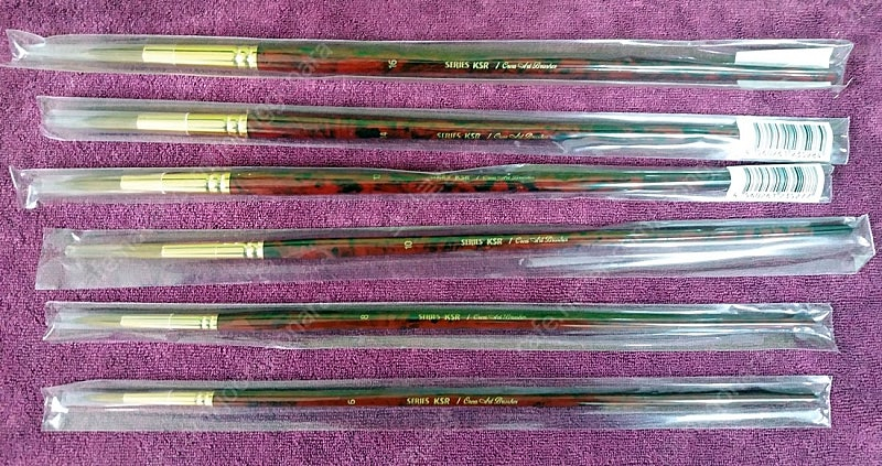경남 창원 사림동 직거래 가능하며 4 천원 추가해주시면 택배비 선불로 보내드립니다... 1. 수채화 물감 1) 펜텔 12ml 12색 판매가 : 0.7 만원 2) 사쿠라 포스터 칼라 12ml 8색 판매가 : 0.4 만원 3) 펜텔 수채화 물감 5ml 비닐 뜯지 않은 미사용 신품이지만 오래된 제품입니다. 제가 사용해보니 큰문제는 없었고 품질이 좋습니다. 다이소 물감 가격도 안됩니다. 판매가 : 12색 0.3 만원 18색 0.5 만원 4) 사쿠라 물감 5ml 12 색 판매가 : 0.3 만원 5) 오래된 일제 기타페인트 수채화물감 오래된 물감이지만 JIS마크있는 품질좋은 제품입니다. 색감좋고 용량도 많아 가성비 아주 좋습니다. 한두개 약간 굳은게 있을수 있지만 거의 대부분 문제없이 사용가능합니다. 종이케이스는 아주 깨끗하지는 않습니다. 판매가 : 12색 0.5 만원 (10ml / 흰색 14ml) 판매가 : 15색 0.5 만원 (7.5ml) 판매가 : 18색 0.7 만원 (10ml / 흰색 12ml) 2. 수채화 용 붓 1) 일제 콜린스키 천연모 붓 화홍 콜린스키보다 훨씬 저렴하게 드립니다. 족제비털로 만든 콜린스키 천연모 답게 물도 많이 먹고 탄력도 좋습니다. 이거 사용해보고 나면 합성모는 사용하기 싫어지실 겁니다. 재고 수량은 조금 있습니다. 판매가 : 6호 0.4 만원 8호 0.6 만원 10호 0.8 만원 12호 1.1 만원 14호 1.3 만원 16호 1.6 만원 사용중인 콜린스키 붓 모습 2) 라거붓 라이너붓 / 콜린스키 + 다람쥐털 이중모 천연모 중심부의 긴털은 콜린스키이고 바깥쪽은 다람쥐털로 되어 있습니다. 가느다란 선과 라인 긋는 용도로 아주 좋습니다... 화홍 300R 1호 정도 크기입니다. 재고 수량 몇개 있습니다. 판매가 : 0.4 만원 3) 일제 다람쥐털 쳔연모 붓 물을 정말 많이 먹습니다... 천연모 특성상 부드러워서 초보분이 사용하기에는 조금 적응시간이 필요합니다. 밑에 판매중인 홀베인 700R 시리즈와 붓모나 외형이 거의 동일합니다. 브랜드만 보지 마시고 좋은 싸게 구매하세요... 재고 수량 조금 있습니다. 판매가 : 6호 0.2 만원 8호 0.3 만원 10호 0.5 만원 12호 0.7 만원 22호 1.5 만원 사용중인 다람쥐털 붓 모습 실제로 검은색에 가까운데 좀 밝게 나왔네요 4) 일제 다람쥐털 쳔연모 납작 둥근붓 재고 수량 조금 있습니다. 판매가 : 0호 0.1 만원 2호 0.2 만원 6호 0.4 만원 10호 0.6 만원 16호 1 만원 5) 펜텔 수채화붓 15호 판매가 : 1개 0.2 만원 6) Artetje 900 시리즈 판매가 : 8호 0.8 만원 12호 1.3 만원 16호 1.8 만원 7) 홀베인 500R 시리즈 판매가 : 0호 0.4 만원 4호 0.6 만원 6호 0.9 만원 8호 1.1 만원 10호 1.4 만원 3. 기타 물품 1) 색연필 펠리시모 500색 중고입니다만 몇개만 아주조금 사용되고 거의 미사용입니다 판매가 : 18 만원 2) 어린이용 팔레트 신품 판매가 : 0.1 만원
