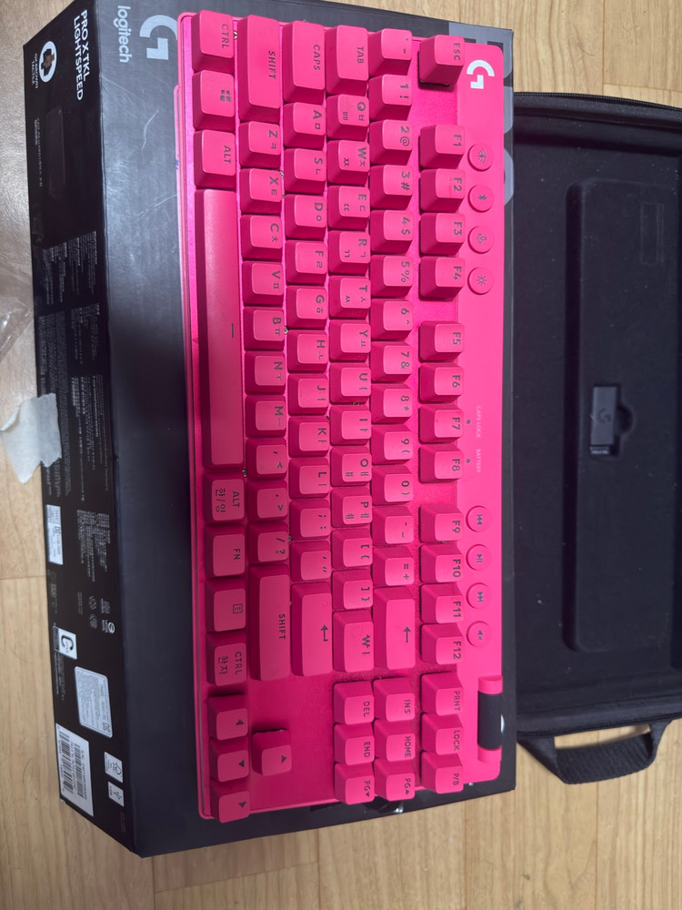 로지텍 G PRO PRO X TKL LIGHTSPEED 올 2월에 장터에서 구매했습니다 박스만 개봉한 개봉품이였고요 국내 정품이고 보증2년이라 아직 많이 남았습니다 . 인천 연수쪽 직거래 그외 택배 입니다