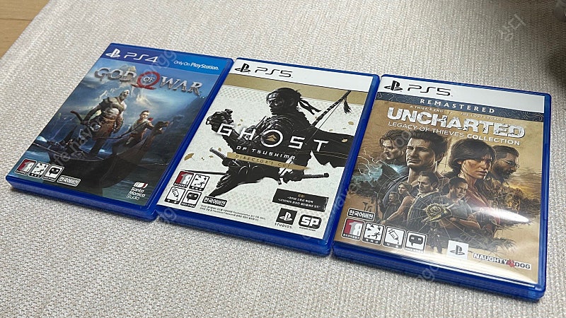 📢 제목에 "제조사/ 브랜드 명"과 "상품명(ex. 동물의 숲2) ”를 넣어 작성하면, 보다 빠른 판매가 가능합니다! 📢 게시글 작성 시 배송 방법에 “직거래”와 “내 위치” 설정할 경우, 보다 빠른 판매가 가능합니다! ps4 갓오브워 8,000원 ps5 고스트 오브 쓰시마 (디렉터스컷) 30,000원 ps5 언차티드 30,000원 영등포 신길동 인근 직거래 혹은 선입금 택배거래 가능합니다. 일괄로 구매하시면 할인있습니다. 🚨회원님의 거래 게시글을 노린 중고나라 운영진 사칭 피싱 사이트를 주의하세요🚨