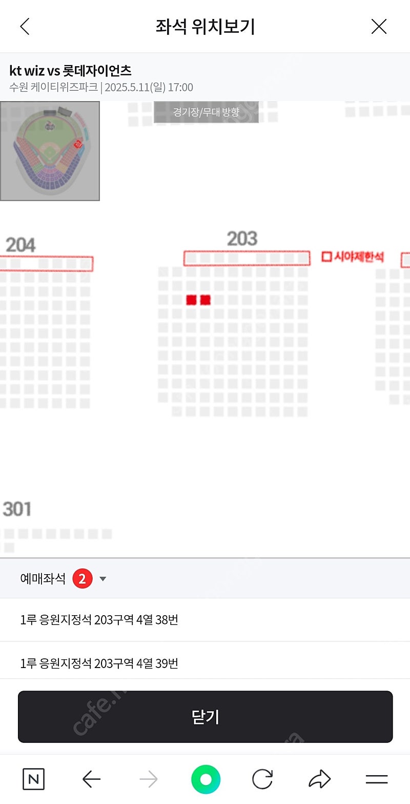 1루 2연석입니다. 사진 참조하세요^^ 📢 제목에 "제조사/ 브랜드 명"과 "상품명”를 넣어 작성하면, 보다 빠른 판매가 가능합니다! 📢 게시글 작성 시 배송 방법에 “직거래”와 “내 위치” 설정할 경우, 보다 빠른 판매가 가능합니다! 🚨회원님의 거래 게시글을 노린 중고나라 운영진 사칭 피싱 사이트를 주의하세요🚨