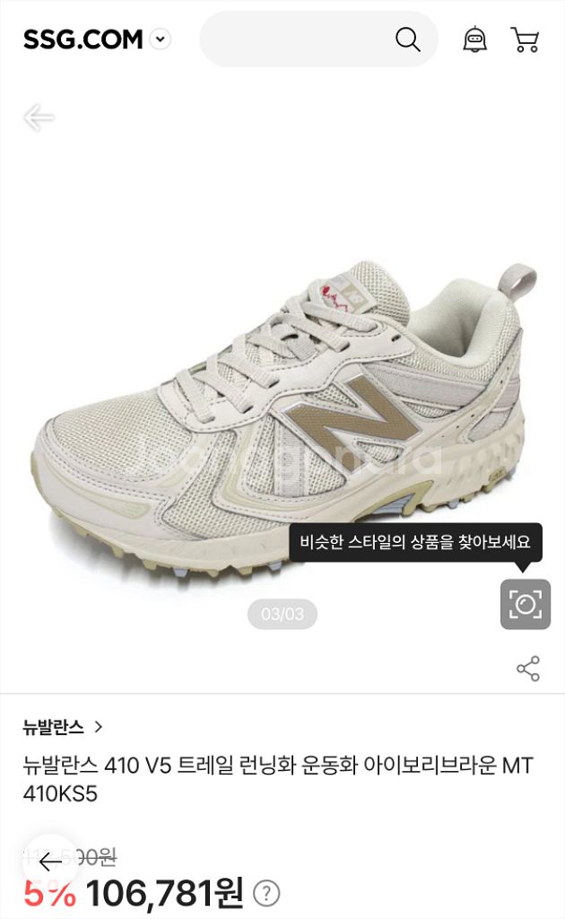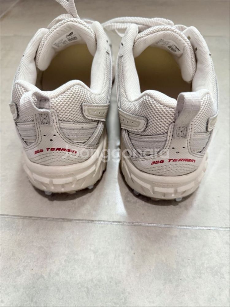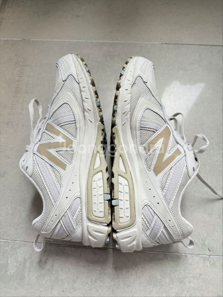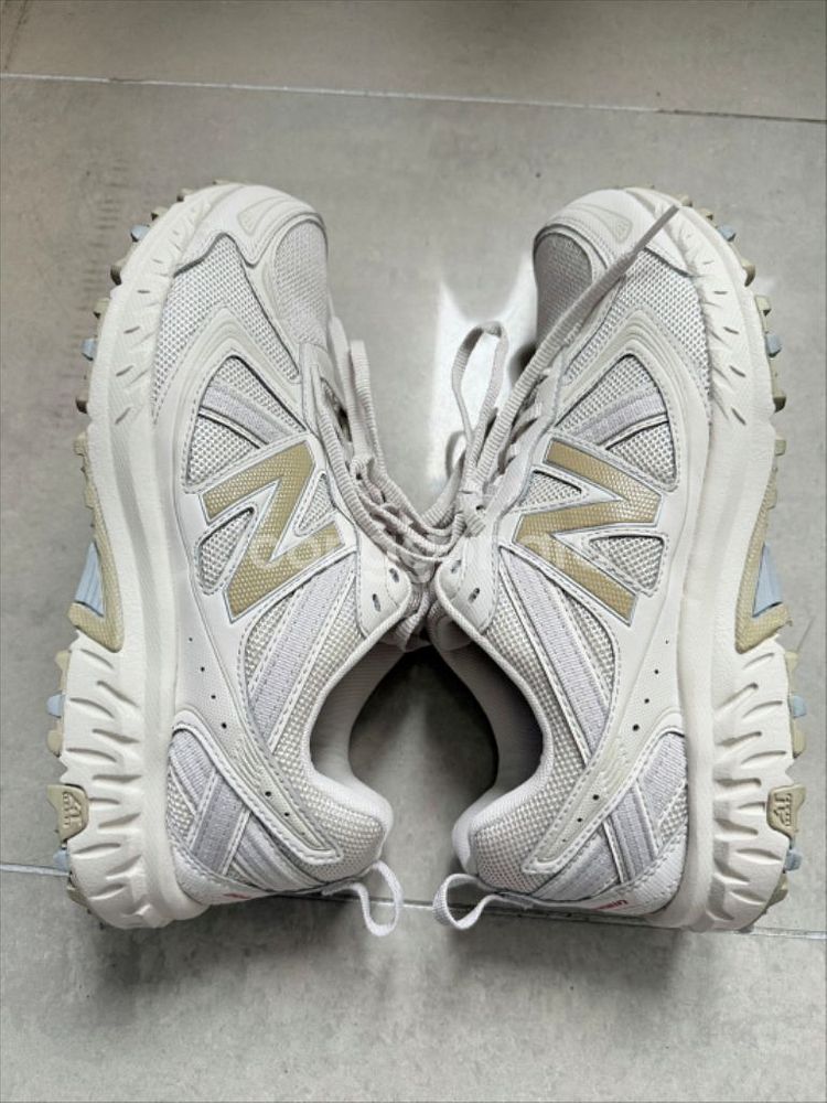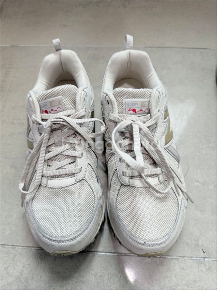 뉴발란스 410 V5 트레일 러닝화 베이지 265 팝니다. 실착 1회(구매한 날만 신고 넣어둠) 제품이고, 신발 본품만 있습니다. 바닥이나 사용감 거의 없고, 세번째 사진에 동그라미 친 부분에 있는 아주 작은 오염 말고는 거의 새상품이랑 동일한 컨디션입니다. 보시면 스티치나 신발끈도 오염 하나도 없습니다. 본품만 있고 급처라 싸게 내놓습니다. 구매하실 분 연락주세요.