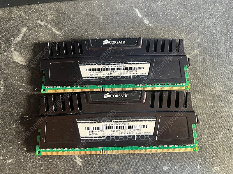 📢 제목에 "제조사/ 브랜드 명"과 "상품명(ex. 맥북 에어 13)”를 넣어 작성하면, 보다 빠른 판매가 가능합니다! 📢 게시글 작성 시 배송 방법에 “직거래”와 “내 위치” 설정할 경우, 보다 빠른 판매가 가능합니다! Corsair Vengeance ddr3 1866mhz 4gb XMP램이고 작동 잘 됩니다. 01054915870으로 연락주세요. 🚨회원님의 거래 게시글을 노린 중고나라 운영진 사칭 피싱 사이트를 주의하세요🚨