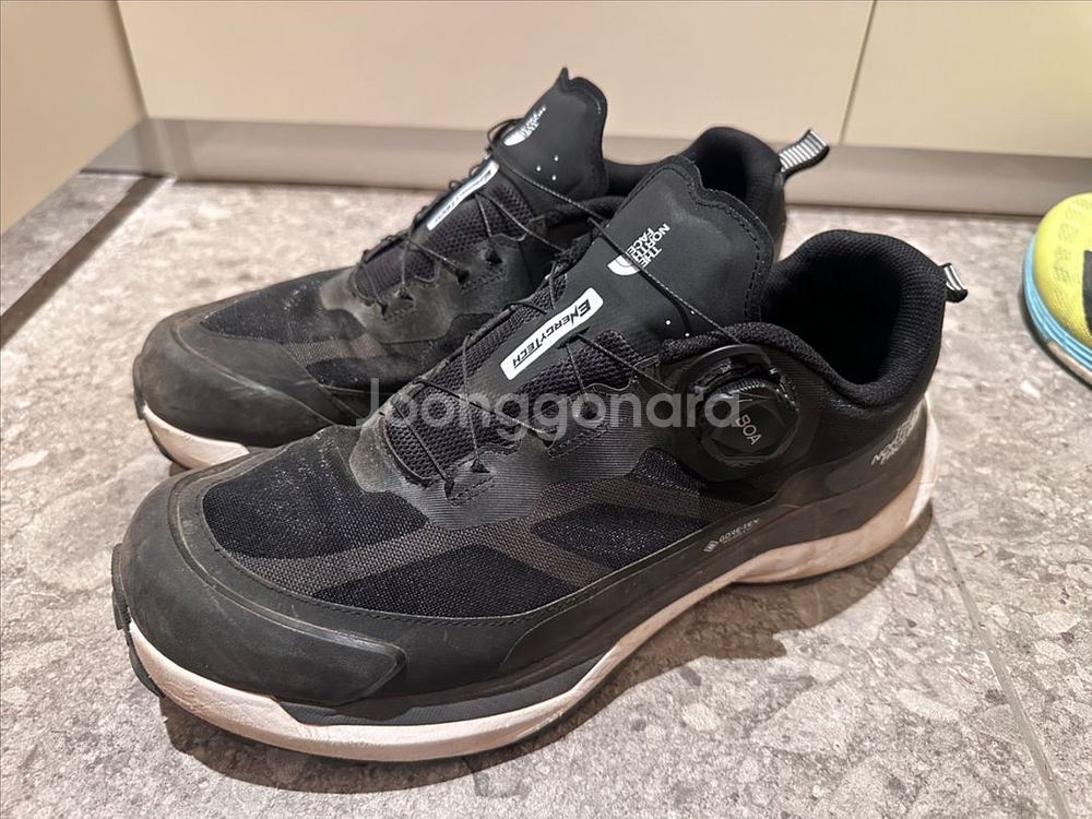 노스페이스 에너지테크 에어 고어텍스 등산화 하이킹화 운동화 밑창은 메리노울이라서, 쉽에 마르고 냄새도 배지 않습니다. 고어택스라서 방수 되는 모델이고요. 끈은 보아( BOA)로 조여서 하는 스타일이라 편리합니다. 블랙 컬러이며, 사이즈는 285밀리입니다.
