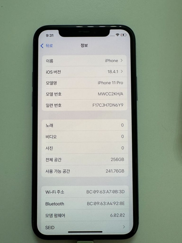아이폰 11 프로 256G 미드나잇그린 KT 유심기변으로 인한 공기계 판매합니다. 11pro 유심기변 하면서 정리하려고 하구요 케이스 및 필름 주기적 적용하여 사이드부 생활기스외엔 없고, 측면부 2-3군데 정도 스크레치 있습니다. 이외 모두 정상이고, 배터리 잔량 83%네요. 필름 같이 동봉하여 택포 가격으로 정리코져 하오니 연락 주세요~5/21 기준 최종 수정가격입니다.