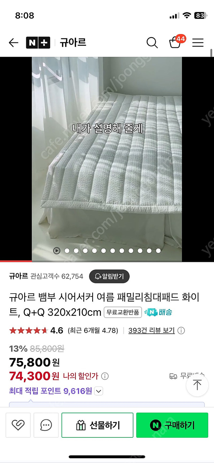 규아르 시어서커 여름 패밀리 침대패드 패밀리 SS+Q 280x210 규아르 뱀부 시어서커 여름 패밀리 침대패드 화이트 색상입니다 사이즈는 패밀리 SS+Q 280x210cm1개 입니다 상태는 사진과 같습니다 미끄럼방지,고정고무줄달려있어요 아이가 잠자리독립해서 일년쓰고 정리합니다 택배가능5천원 📢 제목에 "제조사/ 브랜드 명"과 “상품명(ex. 4단 책장선반)”을 넣어 작성하면, 보다 빠른 판매가 가능합니다! 📢 게시글 작성 시 배송 방법에 “직거래”와 “내 위치” 설정할 경우, 보다 빠른 판매가 가능합니다! 🚨회원님의 거래 게시글을 노린 중고나라 운영진 사칭 피싱 사이트를 주의하세요🚨