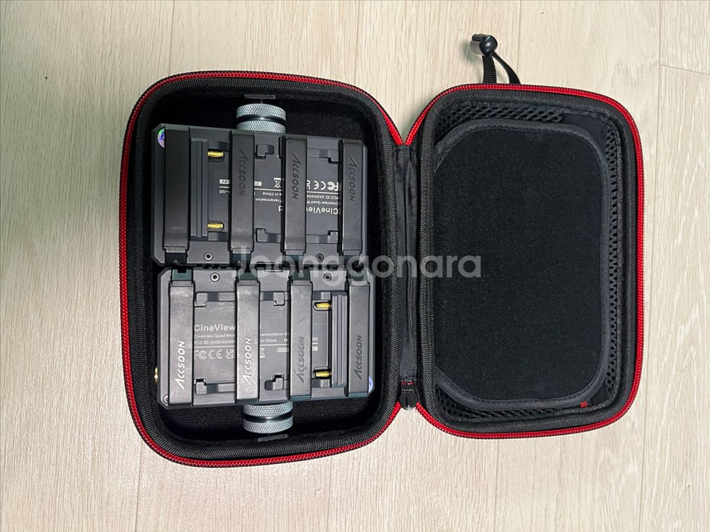 accsoon cineview quad sdi hdmi 입출력 500ft 무선송수신 거리 보호케이스와 택배비 포함 안전결제 입니다 사용감 크게 없구요 작동 테스트 완료했어요 라인들은 따로 없구요 케이스 송수신기 퀵슈 이렇게 있어요