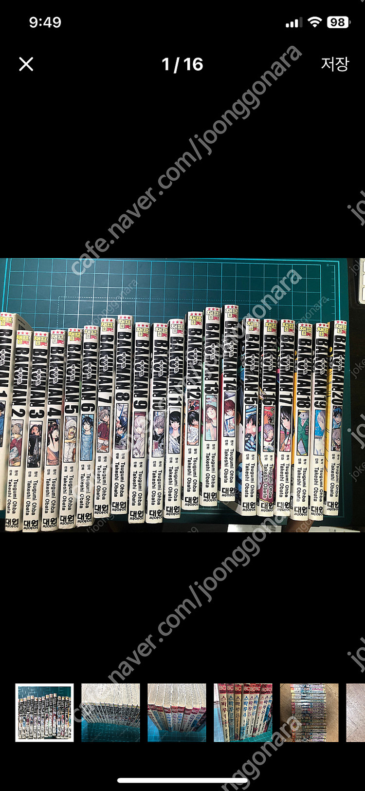 📢 제목에 "출판사+책 이름+저자”를 넣어 작성하면, 보다 빠른 판매가 가능합니다! 📢 게시글 작성 시 배송 방법에 “직거래”와 “내 위치” 설정할 경우, 보다 빠른 판매가 가능합니다! 바쿠만 개인용 (대여점용아님) 입니다. 3만원 직거래 위치는 목포시 석현동 입니다. 사진 보시면 아시겠지만 세월의 흔적 빛바램있습니다. 개인 사정상 처분 합니다. 낱개 판매는 안합니다. 환불 반품 안되오니 신중히 구매바라며 택배 거래시는 비용 착불 입니다. 010 구구구구 5917 문자 부탁드립니다. 🚨회원님의 거래 게시글을 노린 중고나라 운영진 사칭 피싱 사이트를 주의하세요🚨