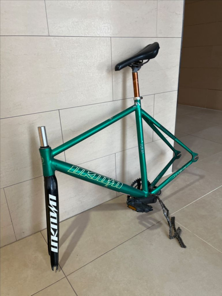 언노운 픽시 프레임입니다 사용감이나 도까는 다분한편입니다 대차도 받습니다 벨로라인 루시나 라흐 완차 받고 다른거도 받습니다 포크는 알카본입니다